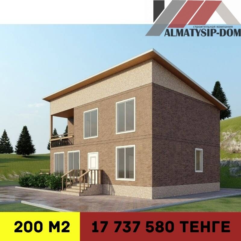 Всегда мечтали о большом доме, в котором можно жить с семьей и детьми, а также принимать гостей? Этот проект позволяет сделать ваши мечты реальностью. Речь идет о двухэтажном сооружении с общей площадью ровно 200 квадратных метров. В доме сразу пять спален (одна на первом этаже и четыре на втором), как минимум, одну из которых разумно сделать гостевой. На первом этаже 40 квадратных метров отведено под кухню-столовую-гостиную, где удобно собираться всей семьей. Хочется также отметить, что строительство дома будет осуществляться по канадской технологии. Это позволяет провести все работы быстро, недорого и без потери качества.
